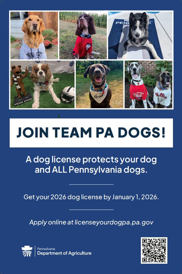 The small license fee helps protect the millions of dogs across the state, the families who adopt or purchase them, and the communities they live in by funding the important work of the Pennsylvania Department of Agriculture Bureau of Dog Law Enforcement.